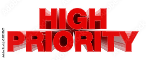HIGH PRIORITY red word on white background illustration 3D rendering