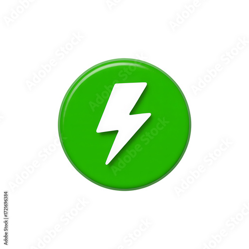 High quality 3d green circle with white lightning bolt icon Isolated on Transparent Background
