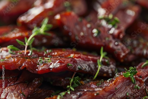 High quality bacon bites with smoky flavor, garnished with herbs. Perfect appetizer or snack for meat lovers.