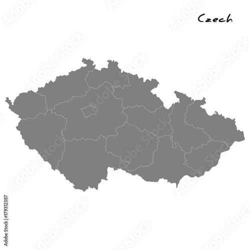 High quality map Czech Republic with borders of the regions