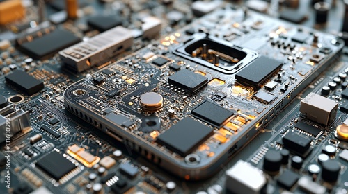 High Resolution Image of Technology Circuit Board with Components and Details for Repair