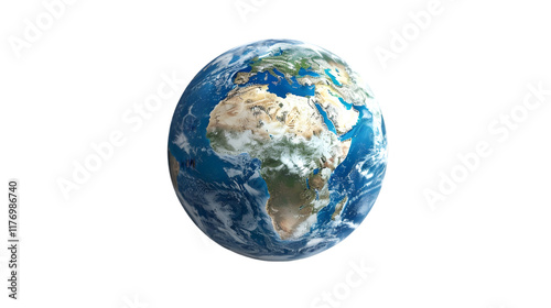 High resolution satellite view of Planet Earth, focused on Eurasia, Europe and Asia - 3D illustration, elements isolated on a transparent background