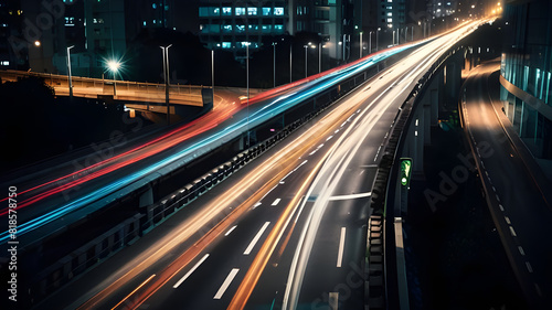 High speed light effect or highway motion light trails abstract background of urban city ai image generative