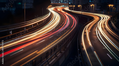 High speed light effect or highway motion light trails abstract background of urban city ai image generative