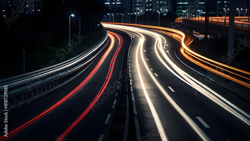 High speed light effect or highway motion light trails abstract background of urban city ai image generative