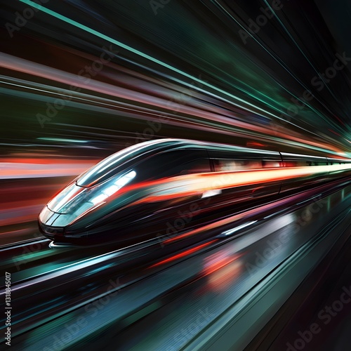 High Speed Train in Dark Tunnel with Motion Blur and Red Light Streaks