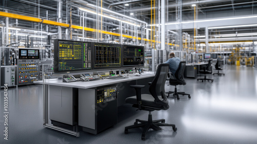 High tech control center in mining facility featuring advanced monitoring systems and equipment. environment is designed for efficiency and precision in operations