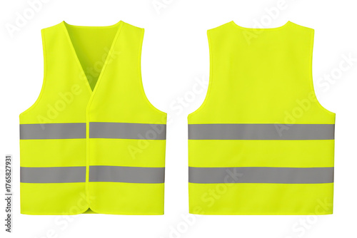 High Visibility Reflective Safety Vest Front and Back Views Isolated