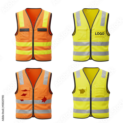 High visibility safety vests in orange and yellow