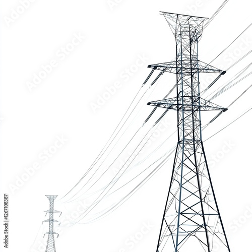 High Voltage Power Transmission Lines Electricity Pylon Energy Infrastructure Metal Structure Steel Tower Electrical Grid Network System Industrial