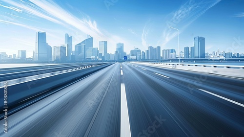 high way with a wide futuristic road going through a tunnel, A sense of speed, View from a tunnel, futuristic city skyline