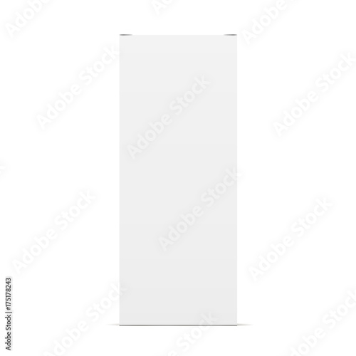 High white cardboard packaging mockup - front view. Rectangular blank closed box isolated. Vector illustration