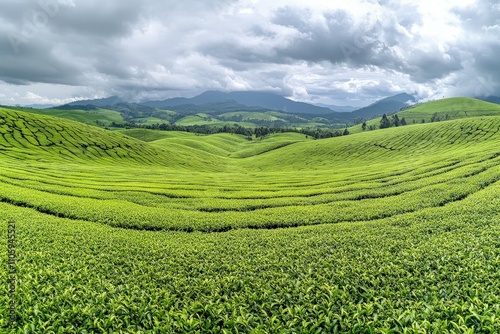 High-altitude drone shot capturing the geometric patterns of terraced agricultural fields. AI generated.. Beautiful simple AI generated image