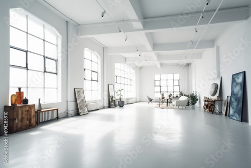 High-Ceiling Room with Large White Wall: Vast Canvas for Product Showcases or Custom Design Elements generative AI