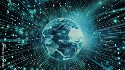 Highdefinition shot of a holographic globe surrounded by digital data streams, with room for text