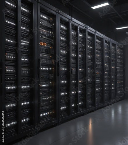 High-density server rack with blinking lights in a secure facility , data, data center, powerful