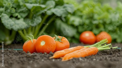 High-detail image of eco-conscious farming, organic vegetables, sustainable methods, rich colors, minimal environmental impact, focus cover all object, deep dept of field