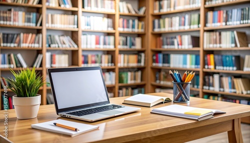 High-Detail Scholarly Workspace with Open Laptop, Academic Journals, Highlighters, and Citation Checklist on Clipboard for Rigorous Academic Research and Study