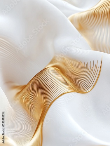 High-end digital white backdrop with dynamic golden curves and geometric elegance.