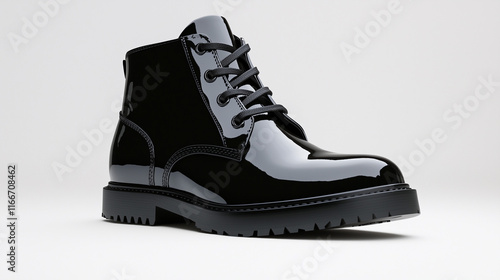 High-fashion ankle boots in glossy black, isolated on white background for chic trends