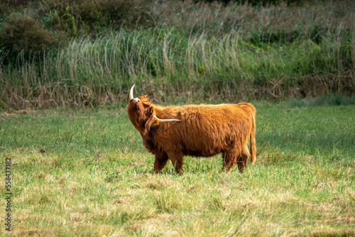 highland cow having a scratch with his horn
