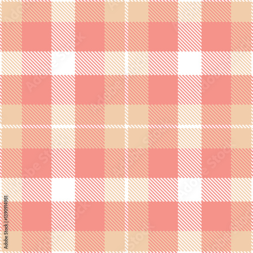 Highland white Seamless Tartan with Highland light peach accents Fabric Design