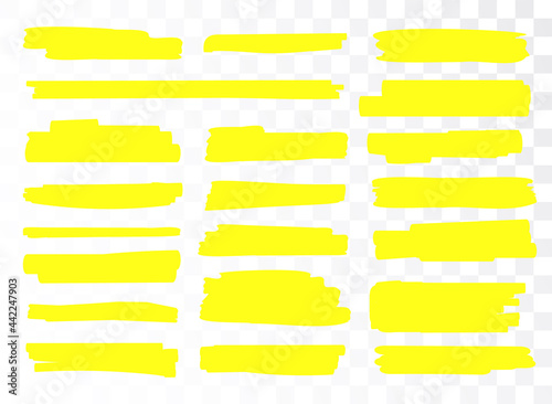 Highlight brush underline yellow marker vector pen. Stroke highligher color set