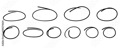 Highlight oval marker frames. Hand drawn circle set. Doodle ovals and ellipses scribble line template. Stock vector illustration isolated on white background.