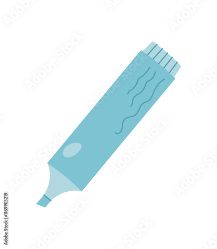 Highlighter item. Pen used to write and draw. Flat graphic style, isolated concept, suitable for educational materials or creative projects.