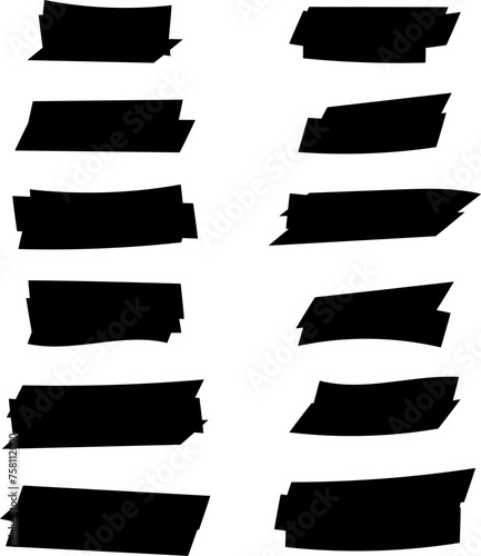 Highlighter line marker strokes lines isolated on white background vector set. Hand drawn black highlight marker lines. Marker pen highlight strokes.