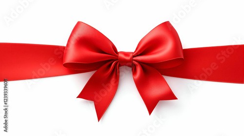 Highly Detailed Realistic Red Satin Ribbon Tied into a Perfect Bow on a Clean White Background, Ideal for Elegant and Polished Design Themes