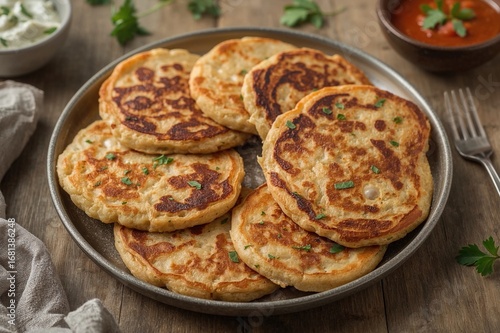 High-protein savory chickpea flour pancakes seasoned with onions, tomato, green chili, and coriander leaves