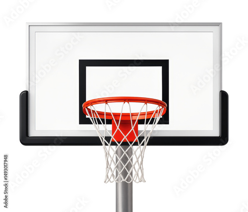 High-Quality Basketball Hoop with Sturdy Red Rim, White Net, and Rectangular Backboard Featuring a Black Target Area, Isolated on Transparent and White Background