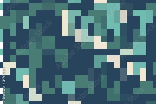 High-quality green pixel camouflage square pattern with structured geometric composition. Abstract military texture concept