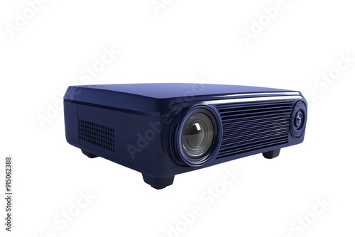 High-quality image of a blue projector for presentations and home theater setups, isolated on transparent background.