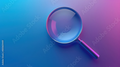 High-quality image of a magnifying glass placed on a gradient background shifting from blue to purple