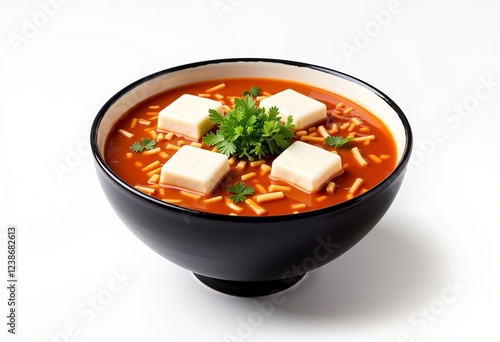 High-Quality Mapo Tofu Bowl: Retro Colors, 16k Resolution, White Background, No Gray, No Shadow, Simple Design, Authentic Dish, Detailed View, Food Illustration, Vector Style.
