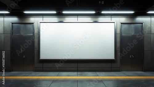 High-quality movie poster mockup in a subway station, showing a blank poster space. Great for showcasing film designs or advertisements in a busy, urban setting.