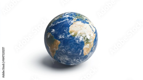High-quality photo of a spinning earth globe, frozen mid-motion, isolated on a plain white background