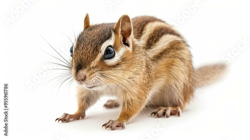 Highquality portrait of an adult chipmunk on a white background, perfect for animal lovers.