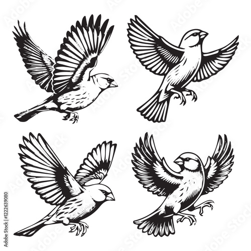 High-Quality Vector Silhouette of a European Greenfinch on White Background"