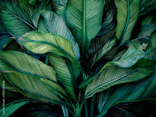 High-resolution foliage artwork with layered green leaves and detailed veins