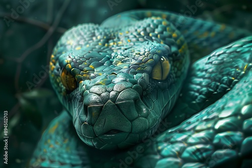 Highresolution image capturing the intricate scale pattern of a green snake with vivid details