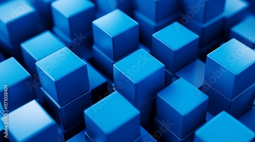 High-resolution image of a background with blue 3D cubes in a clean, minimalist isometric design, showcasing precise geometric shapes and subtle shading effects.