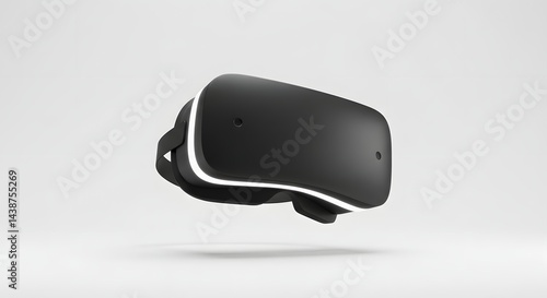 High-resolution image of a modern black VR headset with reflective lenses, placed on a white background.