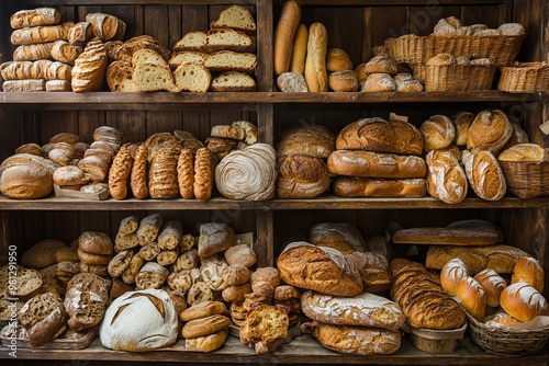 High-Resolution Photography of Assorted Breads and Pastries in Bakery Store AI generated illustration