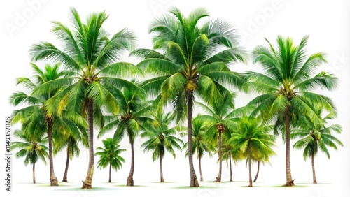 High-resolution, royalty-free panoramic images of isolated palm trees on a white background. Perfect for tropical themes.