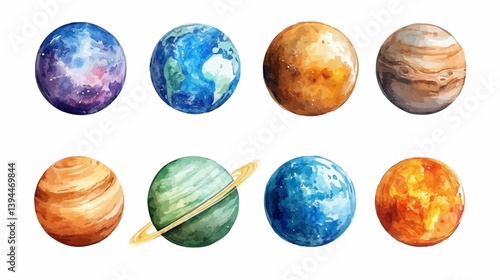 High-resolution watercolor clipart of planets, in pastel colors, for a children's book