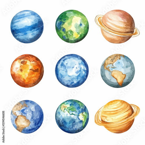 High-resolution watercolor clipart of planets, in pastel colors, for a children's book