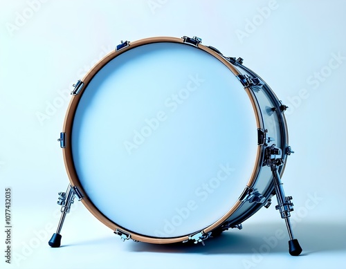 High-Resolution White Bass Drum with Chrome Accents and Pearlescent Finish on White Background – Realistic Detail of Pedals, Metal Rims, and Wood Grain Texture